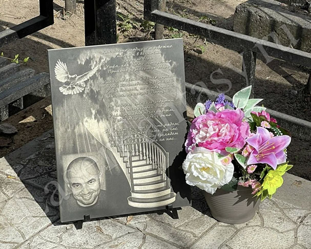 Изготовление памятной доски из керамогранита 300х400 мм в необычном дизайне -