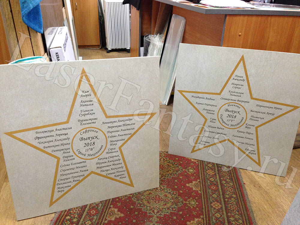 Выпускные классы 630 школы 2017г. Изготовление звезды на керамограните 600х600х10мм -
